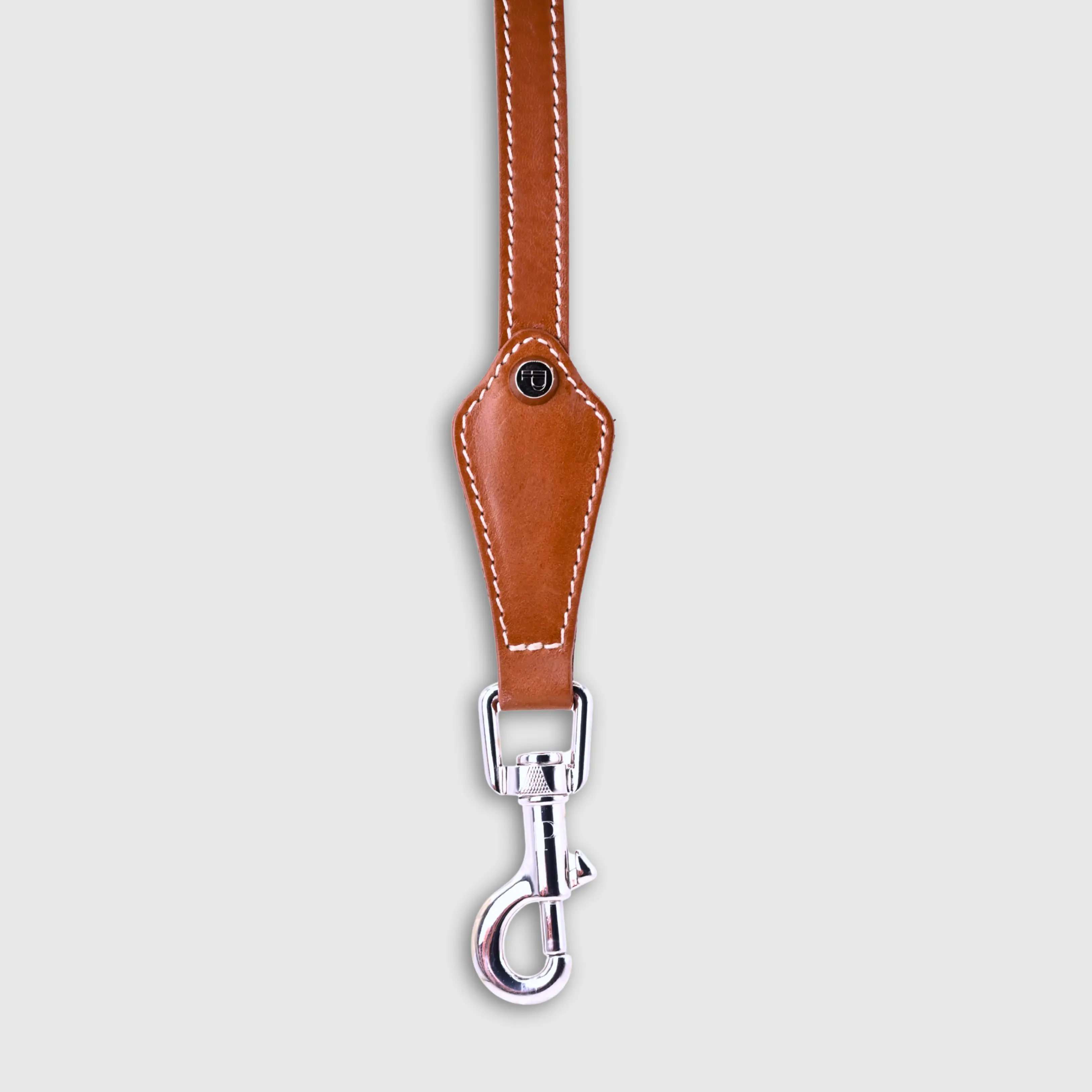 Hand-stitched from smooth, natural calfskin in an artisan workshop in the EU. Characterized by Pattmond’s signature shape, distinguished by subtle shifts in width and refined ornamental details. Caramel-coloured, vegetable-tanned leather with beige contrast stitching and a brown lining inside the handle. Solid brass hardware in silver (signature snap hook and logo studs), nickel-free and protected with a durable, polished finish. With a fixed length of 175 cm and a width of: - 1.5 cm, it is proportioned for smaller and medium dogs - 2.2 cm, it is proportioned for larger dogs.